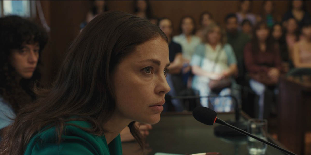 After spending two years in jail, she goes on trial and, following a perfunctory defense from a court-appointed lawyer who barely seems to care, she is given an eight-year sentence for the crime of “aggravated homicide due to kinship.” Another lawyer, Soledad Deza (played by Fonzi herself), hears about the case, is suitably outraged by what she learns and is determined to get justice for her client, who is now dubbed “Belén” to protect the privacy of her and her family, overcoming any number of personal and professional obstacles in her efforts and helping to inspire a grassroots feminist protest movement along the way.