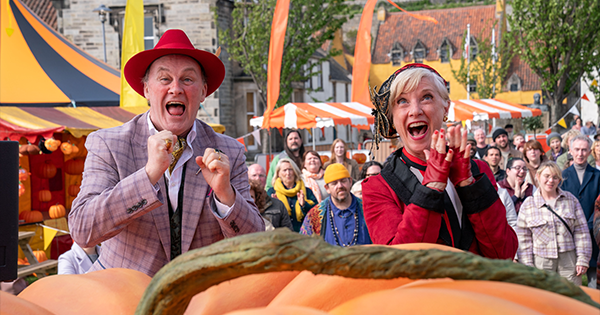 It is a made-up town, but we shot it at a place called Culross. It’s a beautiful little town. There’s loads of history to it. It’s like a British town, and it’s almost got this little touch of Scandinavian architecture to it, which I thought would lean into the fantasy element. It has a big orange building from when they used to tan, and I thought, “Ah, like pumpkins.” And it’s right on the coast as well, so I thought it would just make a really lovely little setting.