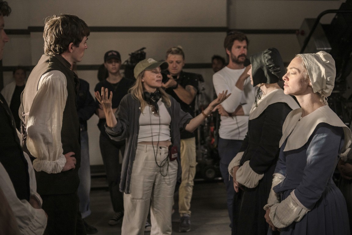 Lee and her followers worshipped through rapturous song and movement, which Fastvold handled by approaching “The Testament of Ann Lee” as a musical of sorts. Collaborating with choreographer Celia Rowlson-Hall (“Vox Lux”) and composer Daniel Blumberg (“The Brutalist”), who created original songs based on Shaker hymns, the cast and crew committed to a lengthy rehearsal process, learning to combine movement with music ahead of an intense 34-day shoot.