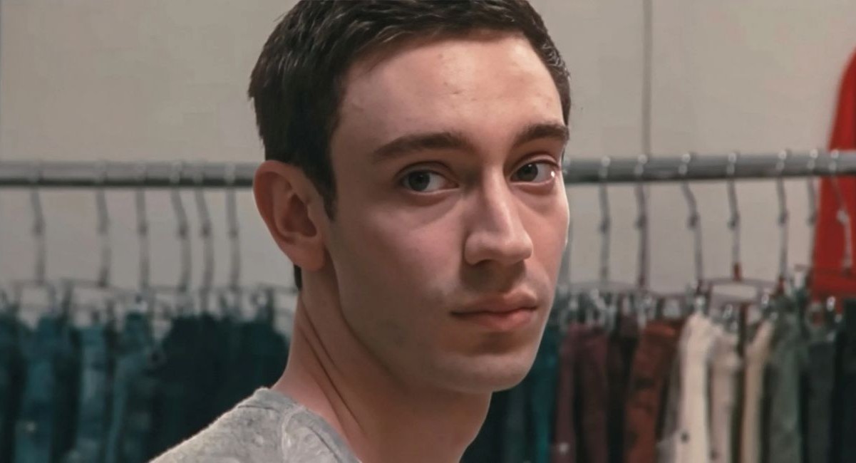 In Carmen Emmi’s “Plainclothes,” undercover cop Lucas (Tom Blyth) has been tasked with entrapping gay men at a local mall, a duty marred by the fact that he himself is a gay man. Throughout the film, which slowly unfolds into a romance between Lucas and Andrew (Russell Tovey), a man he meets on the job, Lucas’ growing paranoia manifests on Blyth’s face in darting glances, dilated pupils, and bodily ticks. As his relationship with Andrew progresses beyond casual sex, Lucas becomes desperate for affection, willing to put his job and life on the line for any semblance of closeness. His anxiety is showcased by the intercutting of grainy, VHS-style footage, the film’s shifting aspect ratios highlighting Blyth’s physicality and reflecting the suffocating constraints of Lucas’ double life.